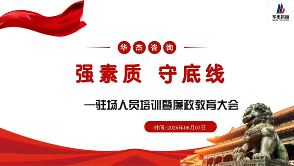 6月7日,浙江華杰工程咨詢有限公司舉辦廉政、安全生產(chǎn)教育與工程管理專項(xiàng)培訓(xùn),公司領(lǐng)導(dǎo)班子、各項(xiàng)目駐場人員百余人參加。培訓(xùn)圍繞廉政、安全生產(chǎn)教育和專業(yè)賦能展開。...
