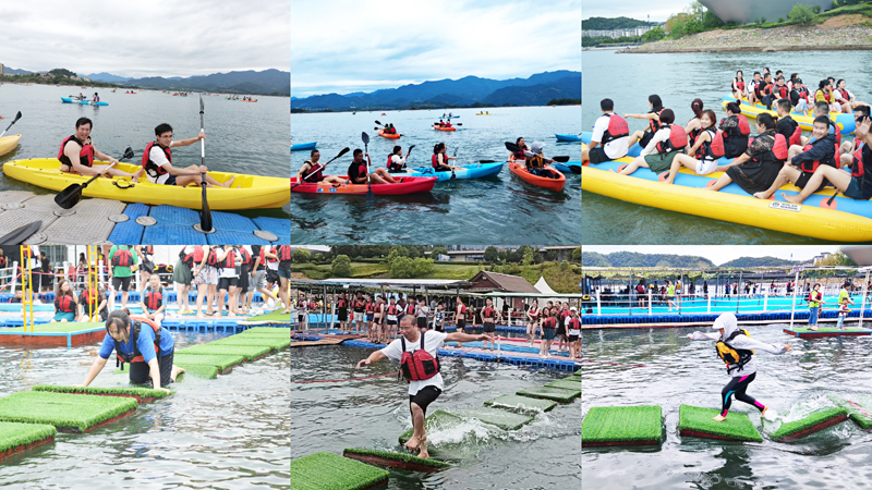 午餐后稍做休整,大家来到了千岛湖水上乐园开启了第二篇章,各队之间依旧高效运作,默契配合,互相激励,在欢声笑语中收获了团结的力量。最后不被看好的团队靠毅力夺得了第一,所以没有完美的个人只有完美的团队。