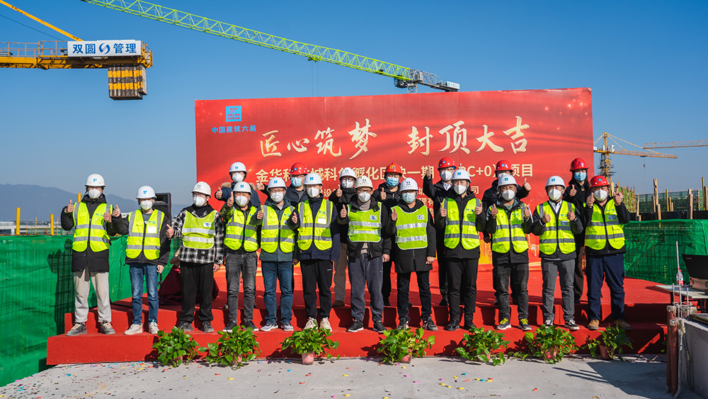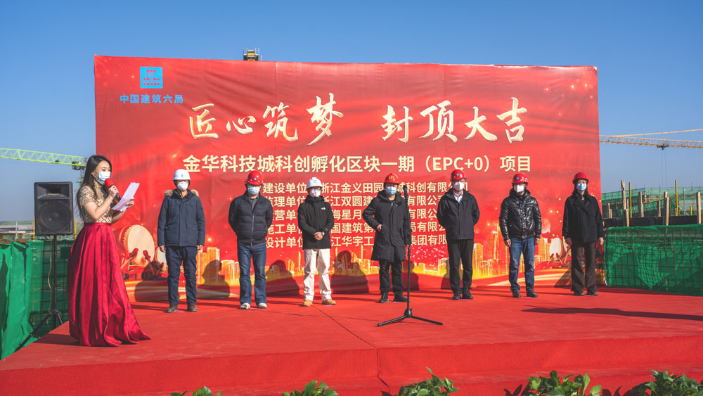2022年12月23日早上,金华科技城科创孵化区块一期项目顺利结顶,公司作为参建单位法人代表邵梅女士出席了结顶仪式。
