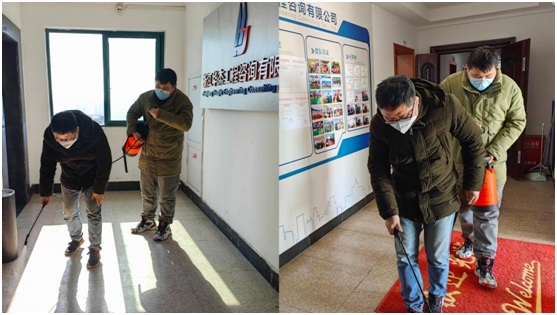 公司对办公区、休息区等区域进行了全方位和地毯式的防疫消杀,确保消杀不留死角,要求全员、全天、全程佩戴口罩,筑牢职工生命健康安全防线。