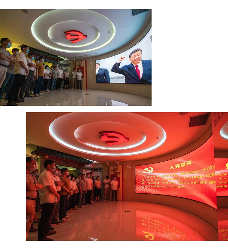 在讲解员的引领下,首先大家一起观看了习近平主席重温入党誓词,铿锵誓词,仿佛一记记重锤,敲击着每一位的心灵,让同行的党员们深深感受到党员的责任、使命和荣耀,同时在思想上再次受到了洗礼和升华。