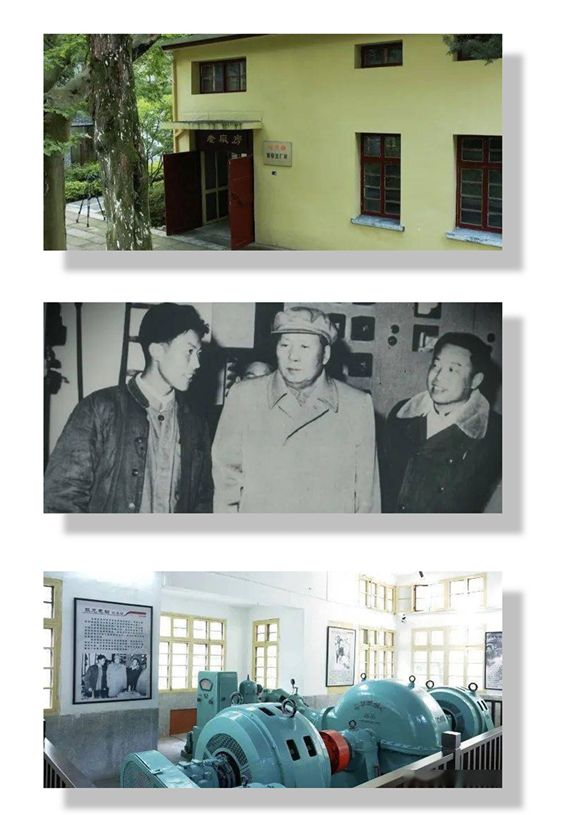 走进电站,就能看到隐隐约约几栋老式建筑置身于一片葱郁之中,那些便是水电站的厂房与宿舍楼,毛主席曾仔细观看的励磁机仍在那栋黄色老厂房中。双龙水电站始建于1958年,是全体水电站的干部职工们靠着自己的双手双肩扛起材料,用自己的智慧摸索出联机发电技术,修建的,它成为了金华地委、县委在金华山动工兴建的8座梯极水电站之冠。1960年,毛主席曾坐专列专程来双龙水电站视察,高度赞扬了金华人民自力更生、艰苦奋斗的精神。大家通过参观旧址,重温了先辈们的那段光辉足迹,深受洗礼。表示要以先辈们为榜样,做好本职,弘扬奋斗精神,为行业发展贡献自己一份力量。